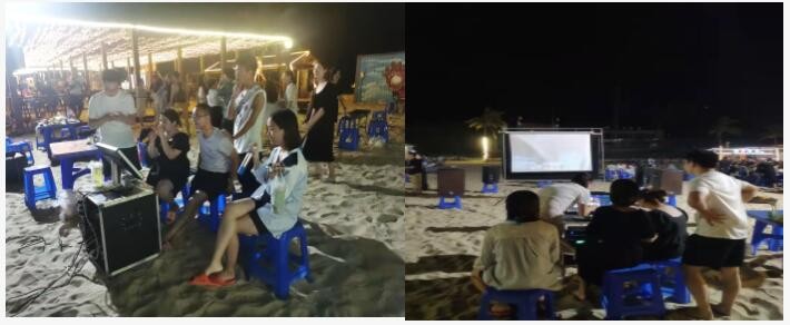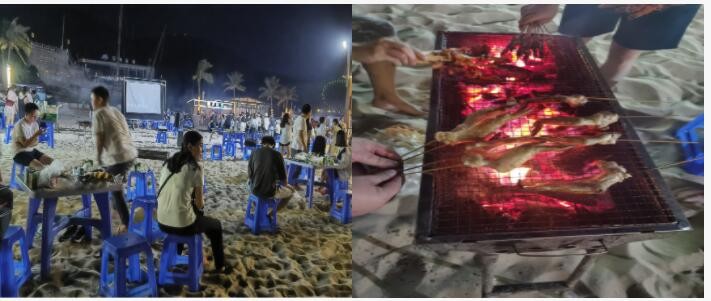享受了一下午的陽光和沙灘,人玩嗨了肚子喊餓了,夜幕漸漸降臨,沙灘燒烤在召喚著我們,豐富的食材,紅紅的炭火,炙肉的濃香和煙氣,讓我們盡情享受著美食的快樂。伴隨這燒烤大餐的還有不少的節(jié)目:沙灘KTV、熱浪、篝火、歌聲、煙花、舞蹈。一句話:熱情燃燒今朝。