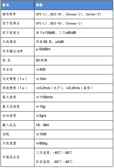 1、 天線陣列由4個BDS B1、GPS L1、GLONASS L1抗干擾單元組成;