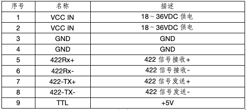 數(shù)字通信控制接口的連接器型號為J30J-9ZK,提供供電和串口通信,接口定義如下:
